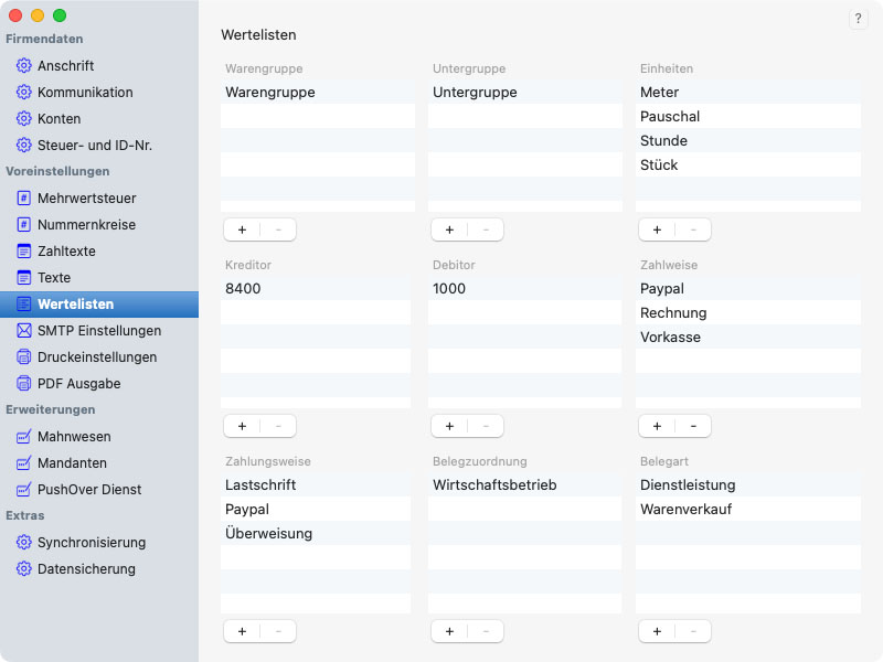Mit Hilfe der Einstellungen steuern Sie das Verhalten von RechnungPro X, legen Vorgabetexte fest, die dann automatisch in Rechnungen und eMails verwendet werden, fügen Ihr Firmenlogo bzw. Briefpapier ein.